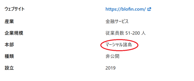 また、所在地も情報にブレがあり、例えばLinkedinのBloFin公式アカウントでは「マーシャル諸島に本部がある」という記載が見られます。