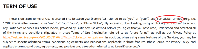 企業名に関しては、過去に公開した利用規約に「BLF Global Limited」という名称を記載していました。
