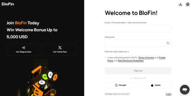 BloFinの口座開設は数分で完了します。具体的な手順は以下の通り。